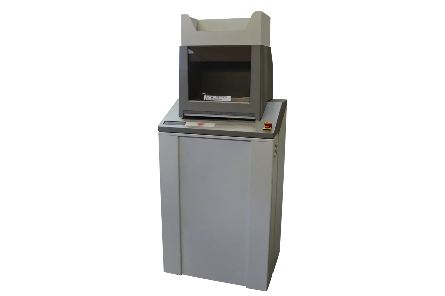 The intimus H200 High Volume Industrial Shredder is an entry level, high volume machine capable of shredding up to 80 sheets per pass. The unique hopper feed design allows the H200 to accept balled and crumpled paper and is large enough to accept a standard office waste basket full of documents. A rotating paddle helps to force feed items into the cutting head for fast, efficient shredding. A bypass sheet feeder at the front of the unit also allows for flat sheet feeding of individual pages or continuous forms.